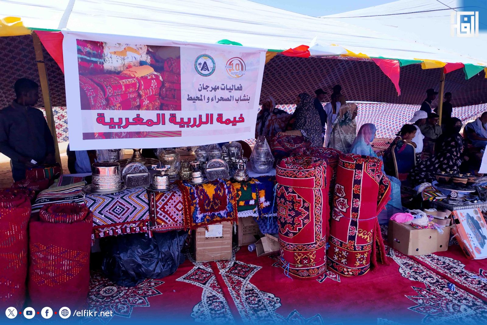 المغاربة شاركوا في المعرض ببعض المنتجات والمواد والسلع وزرابي مبثوثة في جنبات الخيمة المخصصة لهم.