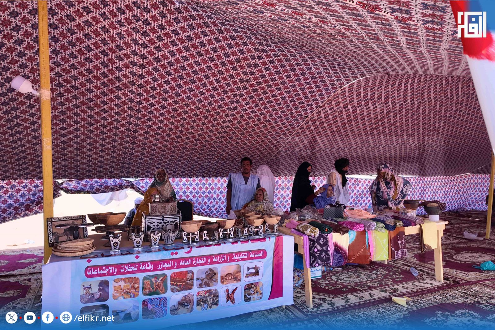 أحد الصناع التقليدين يقدم نفسه على أنه قادم من مدينة كيفة، وطاولة أخرى تشرف عليها مدرسة قرآن تدعى مريم منت محمودا من أسرة أهل محمد اجيد المعروفة في عالم الإتقان للصناعة التقليدية، فكان عرضها مزدوج، فمن ناحية هي تسكن في بنشاب وعلمت كتاب الله لأجيال متتالية من ضمنها العمدة الذي تبسم ضاحكا من قولها.