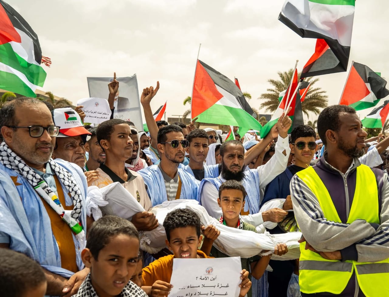 رفضا للإبادة التي تمارس على الشعب الفلسطيني والتجويع الممنهج، ودعما لصمود أهل قطاع غزة، وتلبية لدعوة الأحزاب السياسية والقوى الحية احتشد من الموريتانيين اليوم الأحد أمام السفارة الأمريكية في نواكشوط، تنديدا بممارسات الكيان الصهيوني الغصب ضد سكان القطاع، وذلك ضمن الحراك العالمي ضد حصار وتجويع سكأ ن القطاع المحاصر منذ اكثر من 21 شهرا.