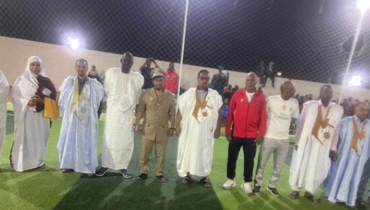 أشرف والي آدرار المساعد، أبو بكر ولد محمد، الليلة البارحة بملعب صالة الأساطير لكرة القدم في حي تنيري بمدينة أطار، على اختتام بطولة رمضان لكرة القدم.